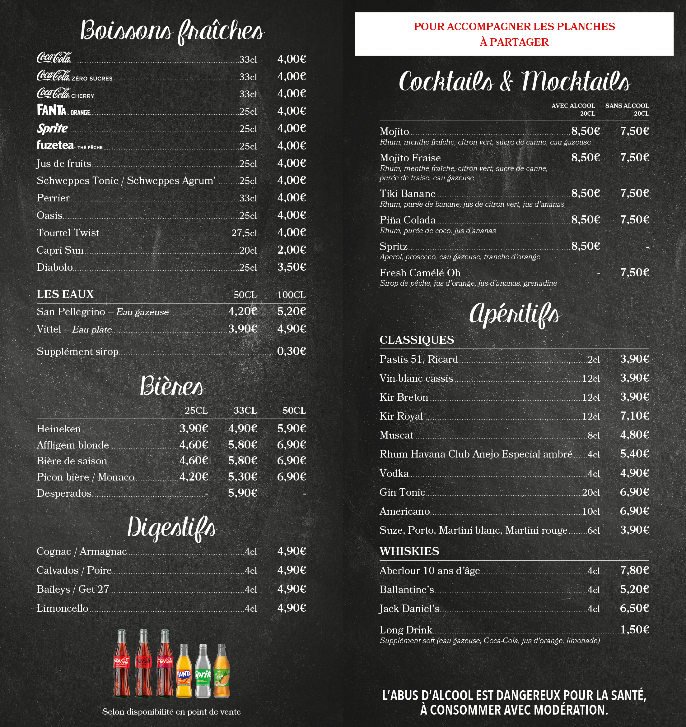 Découvrez la carte de nos boissons